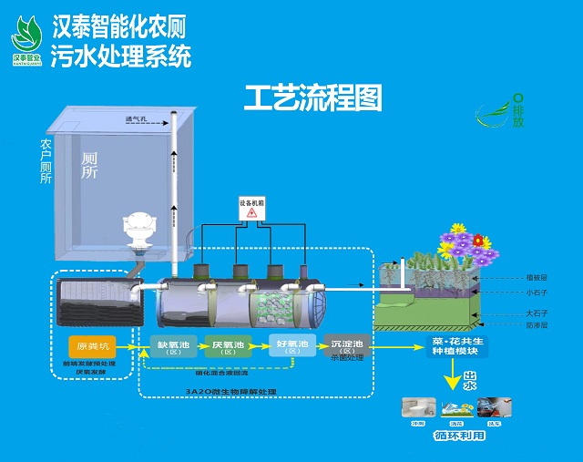 智能化農廁污水微生物降解同步滅菌凈化加菜?花共生綜合利用設備是公司歷時兩年多技術研發,融合了污水處理技術工藝與多年農廁改造實踐經驗的高新技術產品。設備采用公司篩選培育的特種***好、厭氧微生物菌,通過硝化、反硝化微生物降解作用,將廁所糞污中的氨氮有機污染物轉化為無害的氮氣,通過聚磷、釋磷的過程,將磷去除,操作簡單,無二次污染。系統采用分體式設計、占地少,易于安裝,適合基礎設施薄弱的農村,可根據不同地形展開因地制宜的施工作業降低施工難度和成本。設備出水可直接達標排放,日耗電僅0.5元/戶/天,同時,菜?花共生模塊,不僅兼顧處理利用廢水的同時,可以給農戶創造收益,是目前較為理想的農廁改造和糞污綜合處理利用技術設備方案。